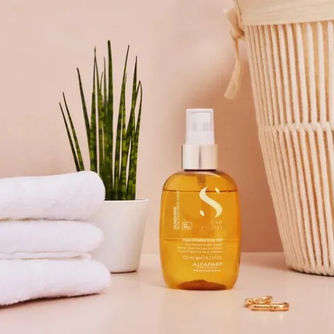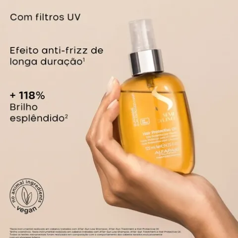 Sinta a leveza do verão sem sacrificar a saúde do seu cabelo. O Hair Protective Oil é o aliado essencial para quem ama o sol mas quer manter os fios nutridos, brilhantes e com a cor vibrante. A sua fórmula bifásica com filtros UV cria uma barreira protetora invisível que escuda cada fio contra os danos provocados pela exposição solar, vento, sal e cloro. É mais do que um óleo — é um escudo inteligente para dias de calor intenso e liberdade total.