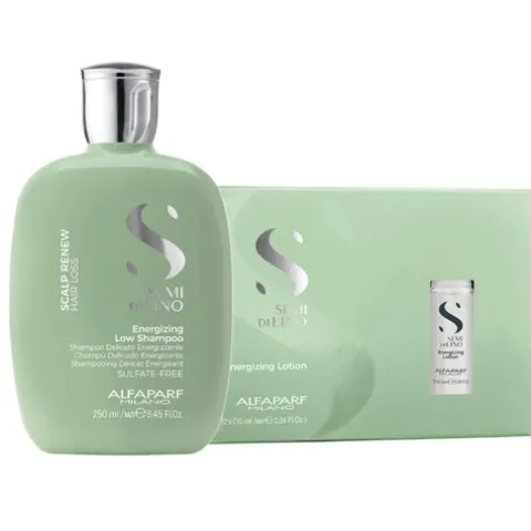 Este pack é composto por: 1 Alfaparf Semi di Lino Scalp Renew Energizing Low Shampoo 250ml + 1 Alfaparf Semi di Lino Scalp Renew Energizing Ampolas 12x10ml