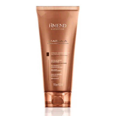 Um creme disciplinante Amend Expertise Nutritivo Marula Fabulous, que penetra profundamente no fio repondo os níveis de hidratação que o cabelo precisa. Dá elasticidade e proporciona brilho e suavidade sem pesar.