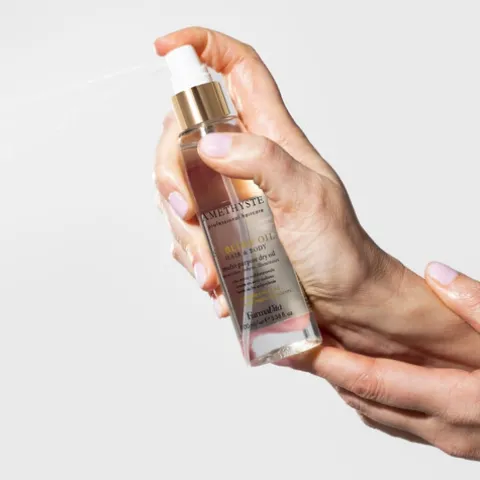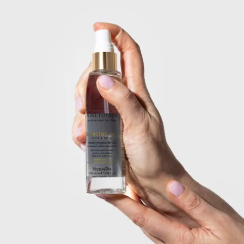 A sua pele e o seu cabelo merecem um cuidado que vai além do comum. O Amethyste Sublime Oil é um óleo seco multifunções formulado com 99% de ingredientes de origem natural, criado para nutrir, suavizar e iluminar – tudo com um só gesto. A sua textura leve envolve pele e cabelo com um toque sedoso e sem oleosidade, deixando um brilho saudável e luxuoso.
