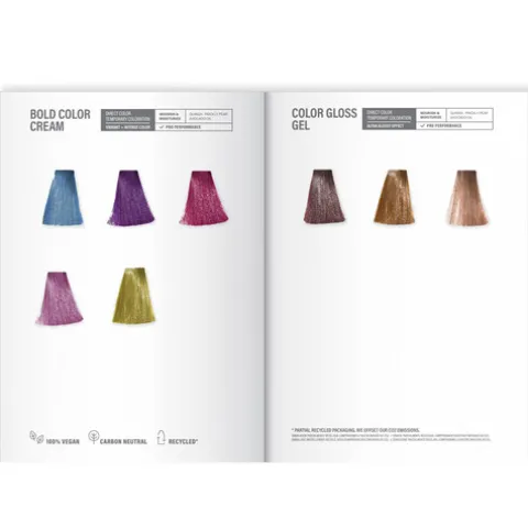 O catálogo perfeito para ter no seu salão, com todos os tons que a tinta de cabelo temporária vegan apresenta.