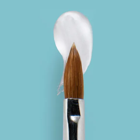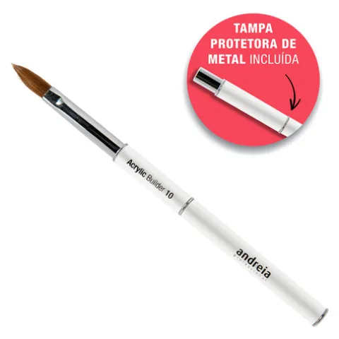 Pincel com pelo Kolinsky (natural) indicado para fazer construções de unhas em acrílico. Inclui uma tampa de metal para proteger os pelos do pincel. Após a sua utilização o pincel deverá ser cuidadosamente limpo com o líquido de acrílico para evitar que restos do produto endureçam no pincel.