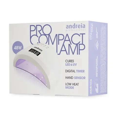 Andreia Pro Compact Lamp é uma lâmpada LED profissional com uma potência de 48W, ideal para catalisar produtos de unhas compatíveis com LED e UV.