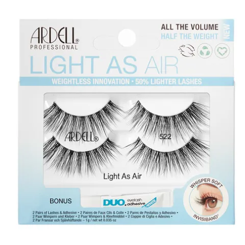 Pestanas falsas Ardell Light As Air 522, com comprimento e volume médios para um olhar encantador.