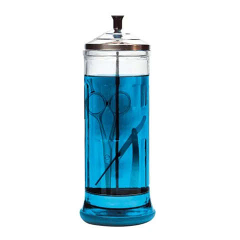 Frasco de vidro para desinfectante líquido. Ideal para manter as ferramentas de trabalho limpas e desinfetadas.