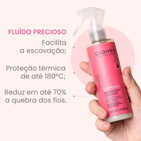 Fluido Precioso é um spray leave in hidratante que fortalece a estrutura capilar e facilita a secagem do cabelo.
