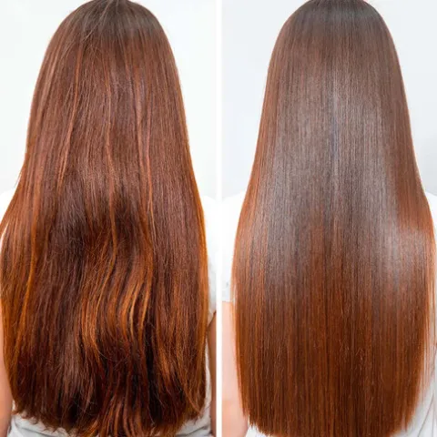 Específico para todos os tipos de cabelos fracos e desidratados, funciona igualmente me cabelos lisos, alisados, cacheados, crespos ou ondulados.