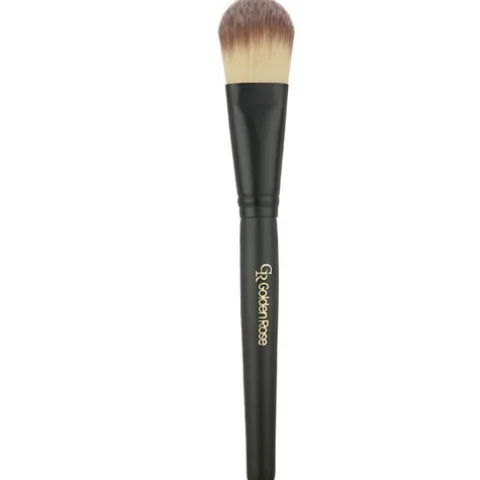 Pincel plano para o rosto que proporciona uma aplicação uniforme de todos os tipos de base com acabamento liso e de aparência natural.