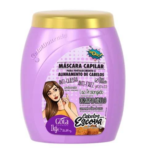 Elaborado especialmente para cabelos com escova definitiva, progressiva ou qualquer tipo de escova, a máscara para fortalecimento e alinhamento de cabelos, com óleo de coco e mel age nos fios combatendo a quebra capilar.