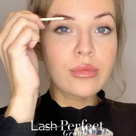 Com um pincel aplicador, aplique a mistura uniformemente nas sobrancelhas, começando pela base e seguindo o formato natural das sobrancelhas.
