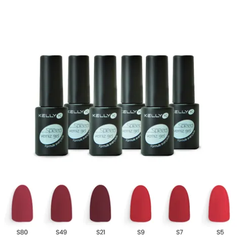 Kit composto por: 6 vernizes Kelly K Speed Gel com as seguintes cores: S5 | S7 | S9 | S21 | S49 | S80