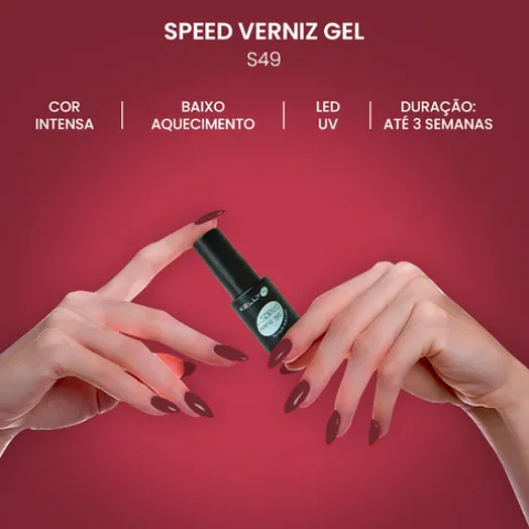 Speed Gel da Kelly K é um verniz gel formulado à base de moléculas fotopolimerizavéis, que catalisa em lâmpadas UV ou LED. Um produto resistente que permite uma maior durabilidade de cor nas unhas comparado com o verniz tradicional. Com uma duração prolongada de brilho intenso, sem estalar, manchar ou partir.