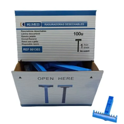 Lâminas descartáveis, utilizadas para depilar/ rapar pelos compridos. A sua pega é composta por polistireno e possui tampa protetora de plástico para evitar acidentes ou danos à lâmina.