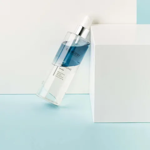 A fase ácida: Constituída por Ácido mandélico e ácido azelaico para suavizar, estimular a renovação celular e facilitar a penetração dos ingredientes ativos