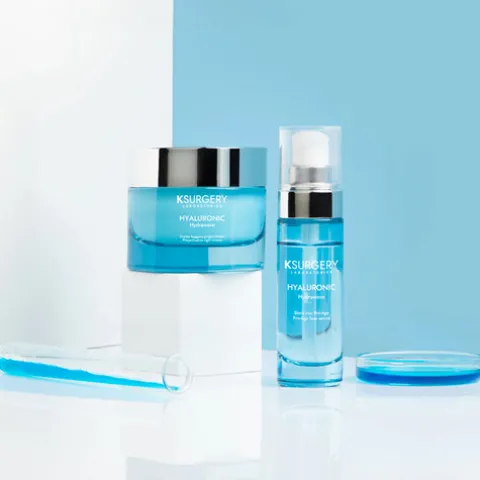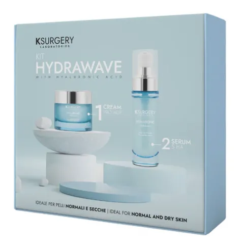 O kit é composto por: Ksurgery Hyaluronic Hydrawave Prejuvination Creme De Hidratação 50ml + Ksurgery Hyaluronic Hydrawave Pro Age Serum De Rosto Regenerador 30ml
