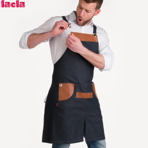 Avental com bolso, alça ajustável no pescoço com fivela, ideal para Cabeleireiros e Gabinetes de estética.