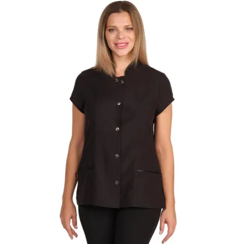 Túnica preta, com gola mandarim. Ideal para Cabeleireiros e Gabinetes de estética.