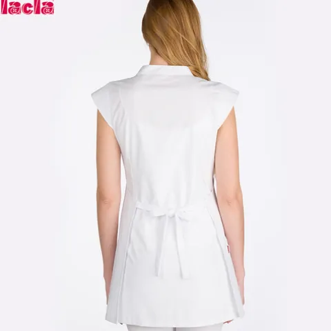 Túnica de cor branca com botões de metal sob pressão. Ideal para Cabeleireiros e Gabinetes de Estética.