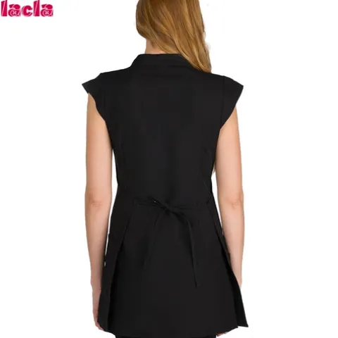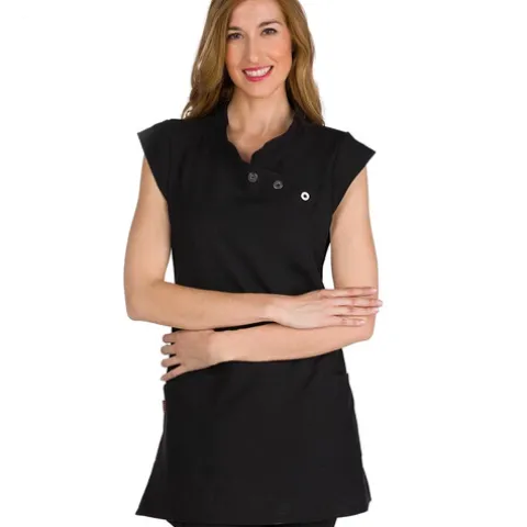 Túnica de cor preta com botões de metal sob pressão. Ideal para Cabeleireiros e Gabinetes de Estética.