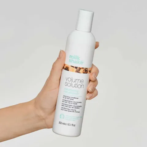Modo de usar: Aplicar o condicionador uniformemente no comprimento e pontas após lavar os cabelos com o Milk_shake® Volume Solution Shampoo, massajando suavemente. Deixar atuar por alguns minutos e enxaguar abundantemente.