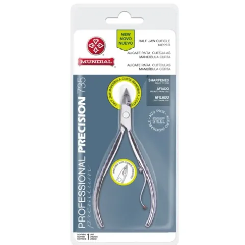 Transforme a sua rotina de cuidados com as unhas com o Mundial Alicate de Cutículas Profissional 735 Precision. Criado para quem exige resultados perfeitos, este alicate é sinónimo de eficiência, conforto e durabilidade. Com uma lâmina curta de 4,5 mm e afiada ao mais alto padrão, garante um corte preciso da cutícula sem esforço e sem dor.