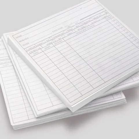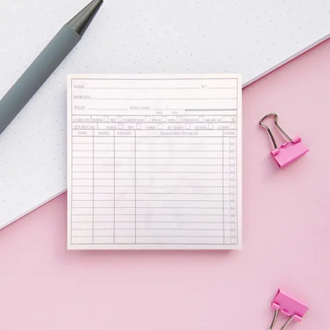 Um bloco de serviço com fichas técnicas, que permite que o profissional registe informações importantes sobre o cliente, como o tipo de cabelo e o histórico dos serviços que já realizou anteriormente, incluindo informações de contacto.