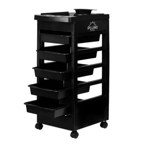 Com uma ampla capacidade de armazenamento, esta mesa de apoio conta com cinco gavetas espaçosas, ideal para guardar todos os utensílios de forma organizada e acessível. Além disso, inclui também um espaço dedicado para taças e acessórios, permitindo manter os itens essenciais sempre à mão.