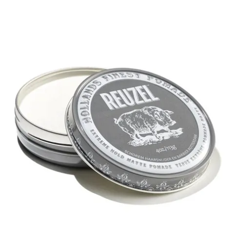 Reuzel Extreme Hold Matte Pomade, perfeita para criar penteados de longa duração e textura marcante. Com a sua fixação extremamente forte e acabamento mate, esta pomada proporciona o suporte necessário para estilos ousados.