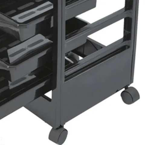 Além disso, o sistema de rodas na base proporciona mobilidade e flexibilidade, permitindo que a mesa seja facilmente deslocada conforme a necessidade. Com medidas compactas, esta mesa de apoio é a escolha ideal para qualquer salão de cabeleireiro que procura praticidade, organização e estilo.