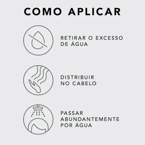 Modo de usar: Aplicar no cabelo molhado. Emulsionar para ativar a espuma rica. Passar abundantemente por água.