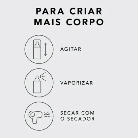 Um gel em spray, ideal para todos os tipos de cabelo, que ajuda a manter os penteados volumosos ao longo do dia.