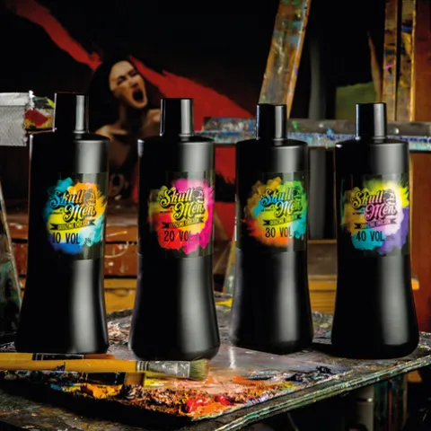 Modo de usar: Misturar 1 medida de tinta para 2 de oxidante Skull Men. (1:2)