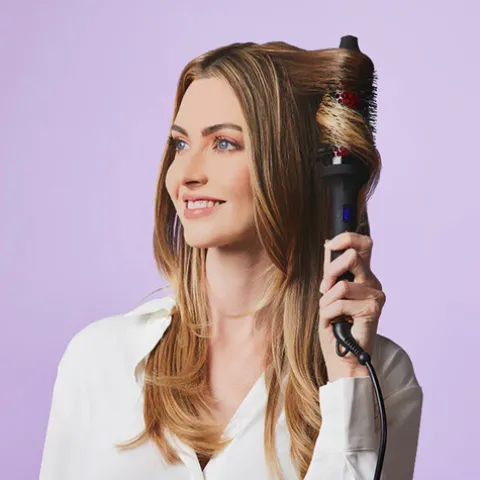 Possui as tecnologias exclusivas Healthy Heat FAR iónica e de infravermelhos distantes (IR), um cilindro de cerâmica com infusão de turmalina para uma experiência extraordinária de criação de penteados num só passo e cerdas especiais que eliminam o frizz e asseguram uma transferência uniforme de calor para um cabelo brilhante e sedoso.