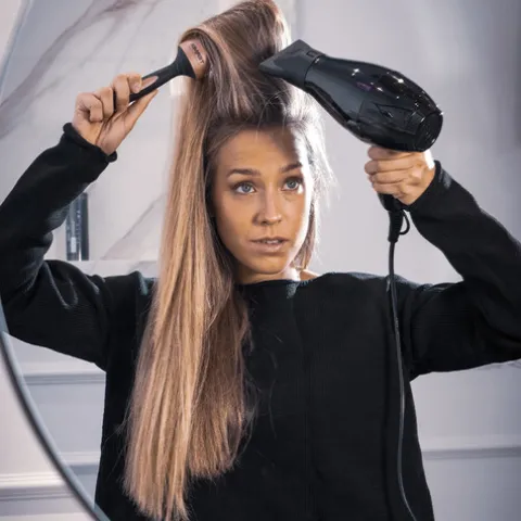 - Secagem ultrarrápida – o seu tubo de PTFC retém o calor do secador e permite um maior fluxo de ar graças ao seu design, maximizando a secagem numa única passagem, até 2 vezes mais rápido que as escovas de alumínio