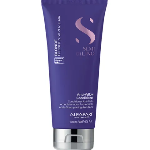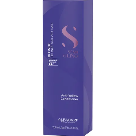 Descubra a excelência dos cuidados capilares da Alfaparf Milano Semi di Lino Blonde com este incrível condicionador antimarelamento que desembaraça e neutraliza os indesejáveis reflexos amarelos, proporcionando vigor e hidratação aos cabelos, sem os deixar pesados.
