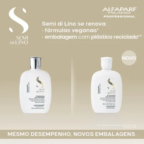O cabelo merece um tratamento especial todos os dias. O Semi di Lino Diamond Low Shampoo foi criado para quem procura um champô iluminador delicado, mas altamente eficaz. Com uma fórmula vegan e sem sulfatos, este cuidado diário proporciona uma experiência sensorial única, envolvendo os fios numa espuma rica e cremosa que limpa sem agredir, mantendo a cor vibrante e o toque sedoso.