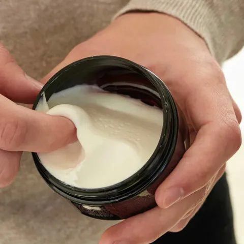 Uma pomada em creme, que hidrata e proporciona um visual natural enquanto controla o cabelo, proporcionando um acabamento com pouco brilho.
