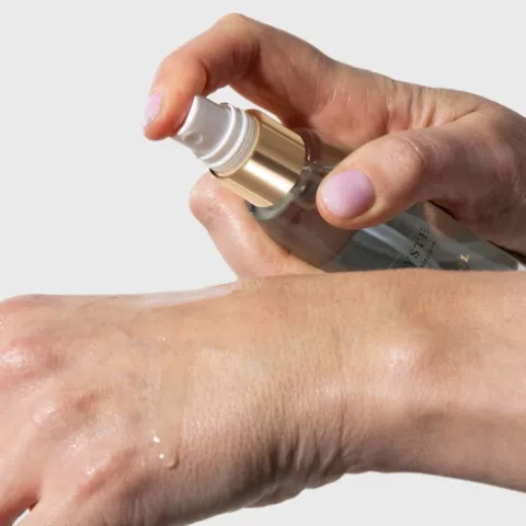 A combinação de óleos vegetais nobres – Brassica Campestris e Aleurites Fordi – cria um filme protetor natural que previne a desidratação, protege contra agressões externas e proporciona uma textura uniforme e luminosa. Enriquecido com Vitamina E e Ceramidas, este elixir reforça a barreira cutânea e capilar, atuando como escudo antioxidante e anti-idade.