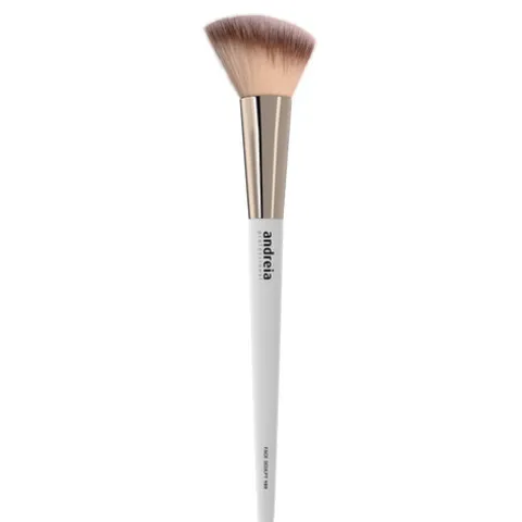Pincel angular para aplicação de pós – bronzer e blush. A sua forma angular permite definir e esculpir de forma intuitiva os contornos do rosto, desde o osso zigomático, às maças do rosto e maxilar.