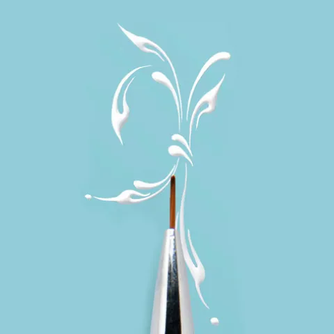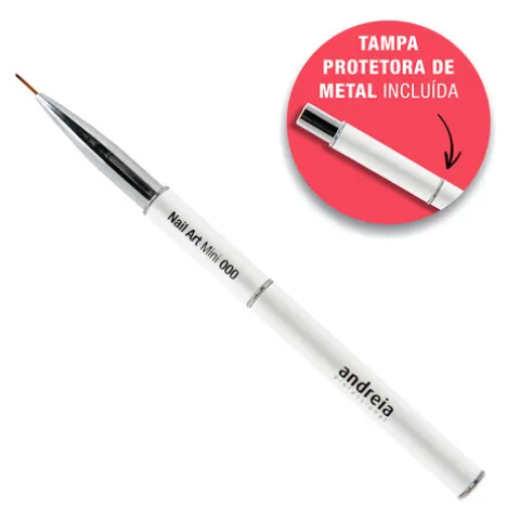 Pincel com pelo sintético indicado para realizar traços de nail art finos e precisos. Inclui uma tampa de metal para proteger os pelos do pincel.