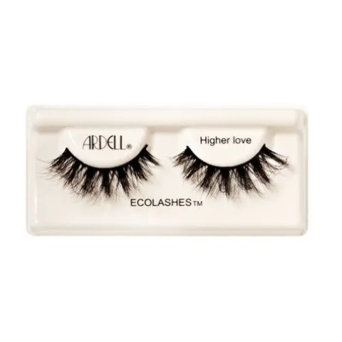 EcoLashes Higher Lover, criadas com um design gradualmente flare que exala todo o glamour possível. A combinação de técnicas de alongamento e múltiplas camadas adiciona um volume fofo, enquanto o efeito de levantamento das pestanas aumenta o drama, fazendo com que os olhos pareçam maiores e os cílios mais longos.