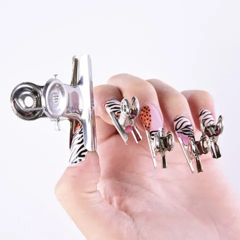 Clips metálicos especialmente projetados para auxiliar na aplicação de unhas postiças, tanto em técnicas de gel, acrigel como acrílico.