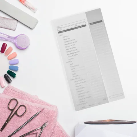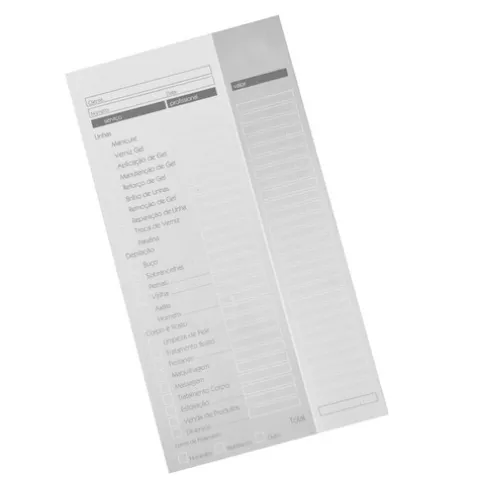 Este pequeno livro de registo de serviços prestados, inclui a descrição dos trabalhos realizados em unhas, depilação e estética, sendo igualmente útil para a gestão financeira do negócio, permitindo um controle mais eficiente das receitas e despesas.