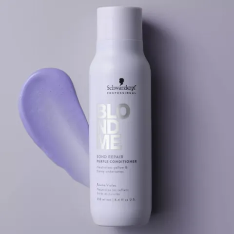 BlondMe Bond Repair Condicionador Roxo é a escolha ideal para cabelos loiros. Com a inovadora tecnologia Bond Repair, ele neutraliza eficazmente os tons amarelados, deixando os fios com um tom frio, vibrante e luminoso.