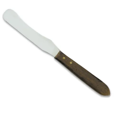 Espátula curva direita com cabo de madeira.