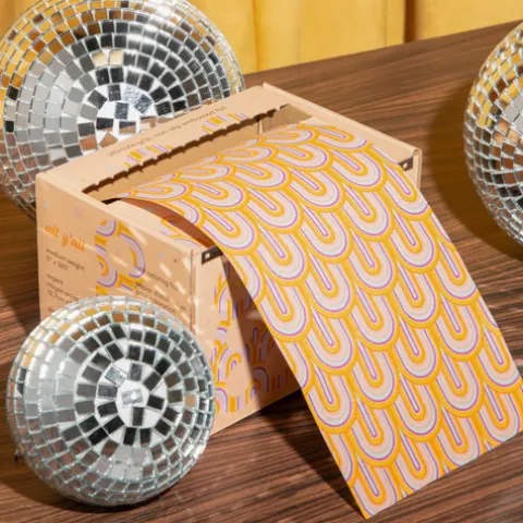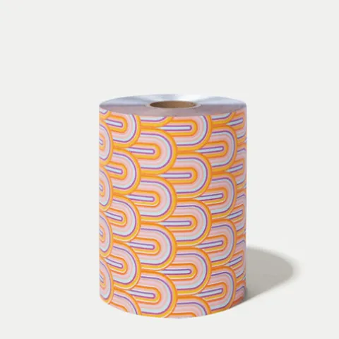 Rolo de papel alumínio estampado com um padrão de arco-íris retro! Uma reviravolta moderna nos já conhecidos e icónicos papéis de alumínio de arco-íris, num estilo vibrante e retro.