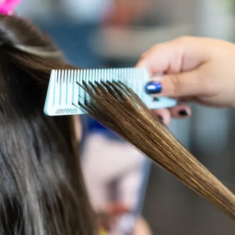- Um simples movimento do pente, cria várias divisões uniformes no cabelo, agilizando todo o trabalho técnico, como pintar o cabelo