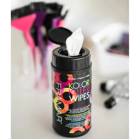 Depois da coloração, as manchas de tinta são sempre um aborrecimento. Para solucionar esse problema a Framar apresenta as suas toalhitas de limpeza, capazes de remover a tinta de cabelo das mãos, rosto e pescoço.