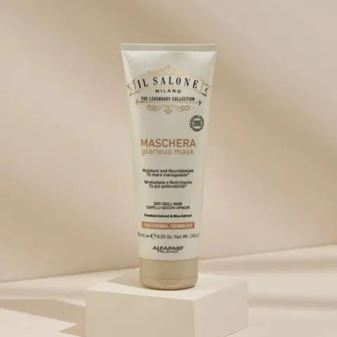 A Glorious Máscara atua diretamente na fibra capilar, penetrando em profundidade para devolver ao cabelo a sua vitalidade natural. Graças a uma fórmula rica em extrato de castanha, extrato de arroz, proteína de trigo e ceramidas, esta máscara não só hidrata como repara os danos visíveis e previne a quebra, deixando o cabelo leve, solto e sedoso.