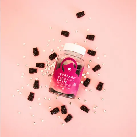 Vibrant Skin é um suplemento vitamínico em formato de goma, que contém altas doses de ácido hialurónico e colagénio.